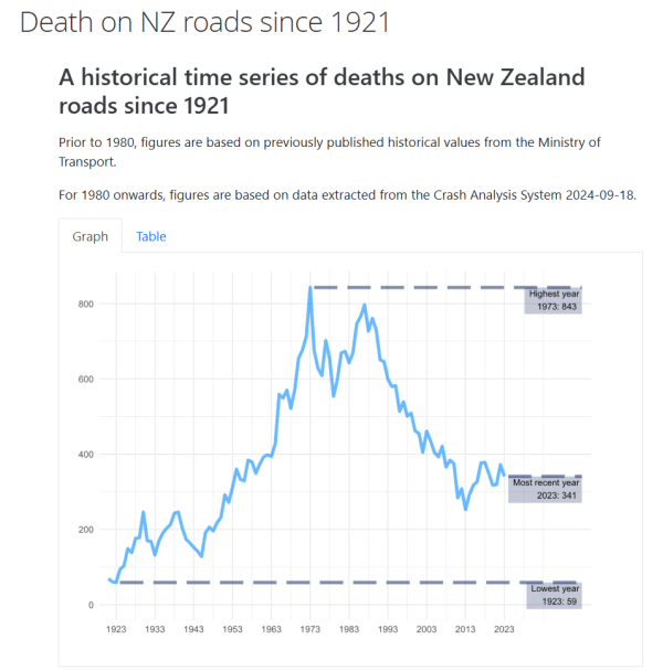 Road safety improved materially over the long run. New Zealand’s road toll has fallen sharply from the high-water mark era (in the 1970s it was in the 800s per year) to the low-to-mid 300s in recent years. That did not happen by accident. It reflects a long sequence of changes—safer vehicles, safer roads, better enforcement, and better emergency response. But crucially, it also reflects a fleet that was able to renew progressively, rather than being trapped in an affordability squeeze.